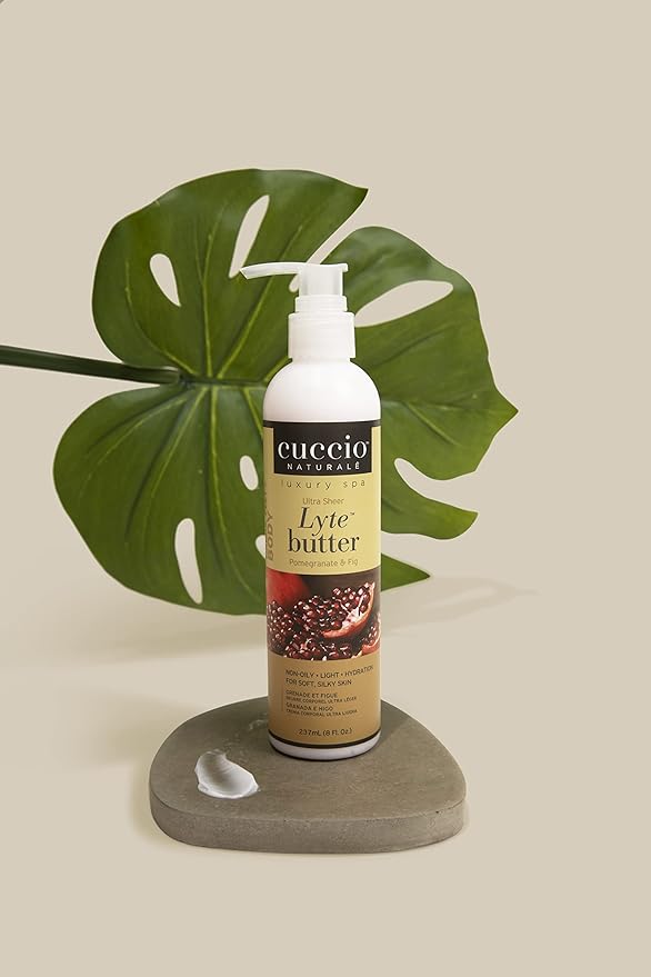 Cuccio Naturale Lyte Ultra-Sheer Body Butter - Replenishing Scented Moisturizer Cream - Deep Hydration To Repair Dry Skin - All Natural, Cruelty-Free Formula - Pomegranate And Fig - 8 Oz