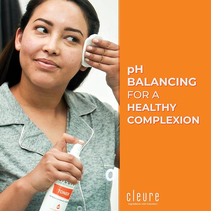 - Help Balance Your Natural pH - Toner is used to balance the pH of your skin to help build the skin’s barrier and fight free radicals as it also helps to remove makeup & tighten pores. Cleure toner sits around a level 5 pH which mirrors your skin's natural pH level of around 5.5, making it ideal for daily use