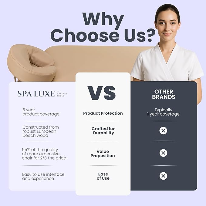 - LUXURY 3.5" MULTI-LAYER FOAM SYSTEM: Experience exceptional client satisfaction with our thick, high-density cushioning system that provides outstanding pressure distribution during lengthy sessions. Unlike portable tables with thinner padding, this stationary massage bed offers premium quality with professional-grade foam that maintains its shape and structural integrity even after years of daily use.