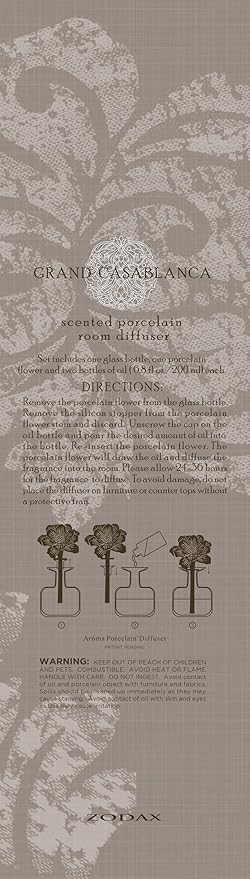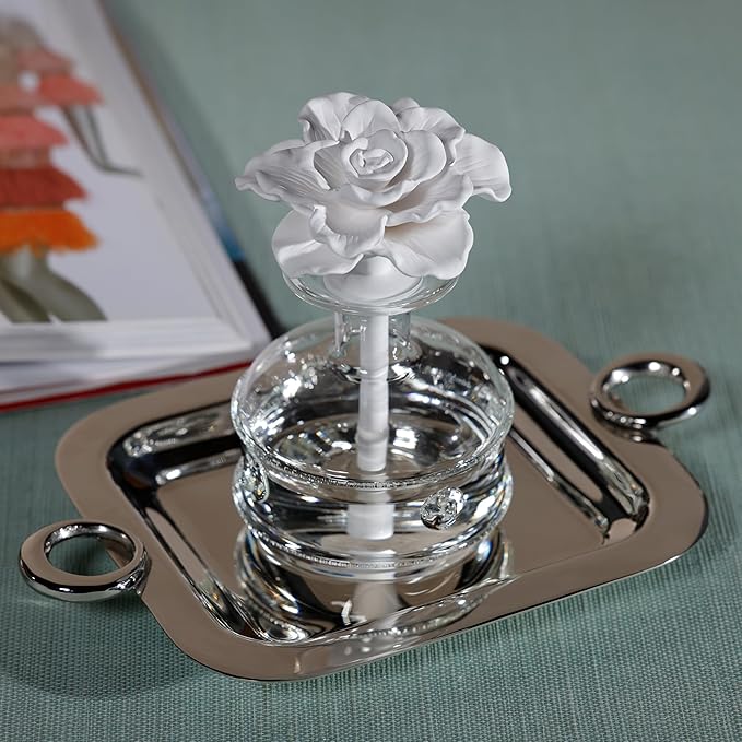 - ELEVATE YOUR HOME'S AMBIANCE: Refresh your office desk, bedroom vanity, or bathroom countertop with the Grand Casablanca Oil Diffuser. Featuring a beautiful porcelain flower housed in a glass bottle, its elegant design makes a stylish addition to any decor.