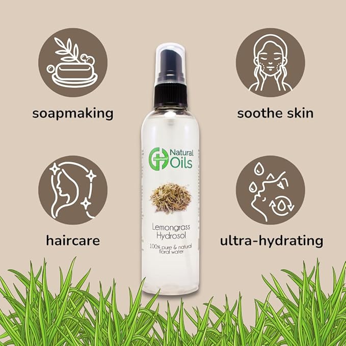 GreenHealth Lemongrass Hydrosol (Floral Water) - 8 fl oz Plastic Jug w/Cap - 100% Pure (NOT Oil)