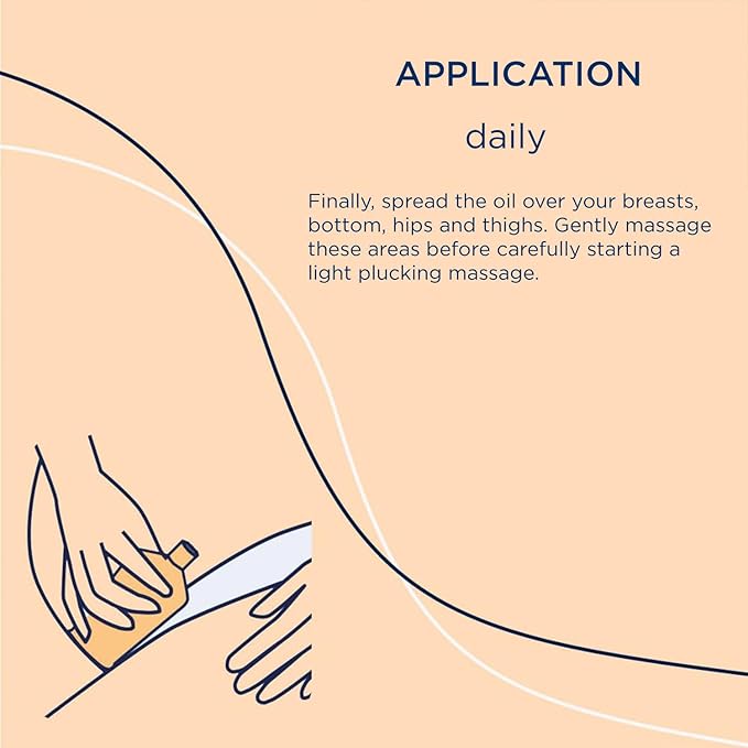 - DIRECTION: 1. Spread frei öl Massage Oil for Pregnant Women liberally over the belly and gently massage it in with stroking movements towards the belly button; 2. Now carefully take the skin between thumb and forefinger (starting at the belly button) and pluck it gently; 3. Finally, spread frei öl Massage Oil for Pregnant Women over your breasts, bottom, hips and thighs. Massage yourself in these areas using the same soft circular movements before gently starting a light pinching massage.
