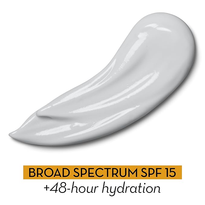 - Daily sunscreen SPF 15 moisturizer helps prevent premature skin damage with Broad Spectrum SPF 15 UVA/UVB sunscreen