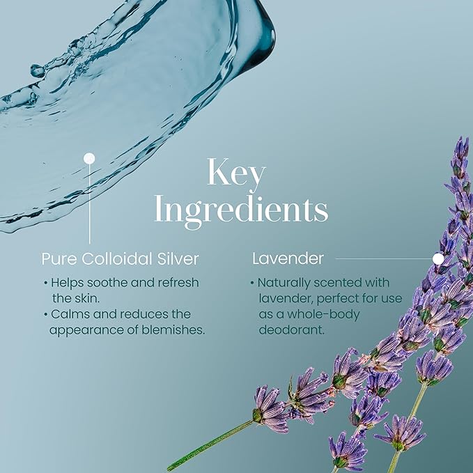 - 🌿 Infused with Colloidal Silver: Experience the power of colloidal silver combined with the soothing properties of lavender to maintain soft, healthy, and radiant skin.
