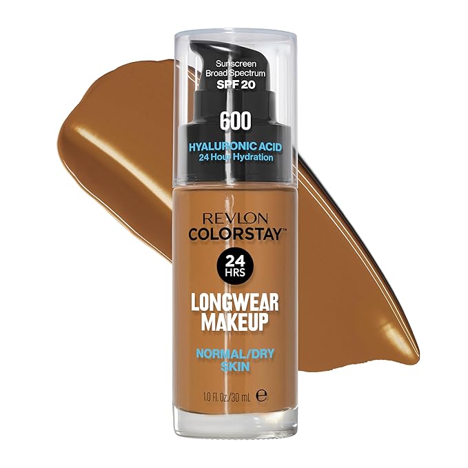 Revlon Liquid Foundation, ColorStay Face Makeup for Normal & Dry Skin, SPF 20, Longwear Medium-Full Coverage with Natural Finish, 600 Cinnamon, 1 Fl Oz