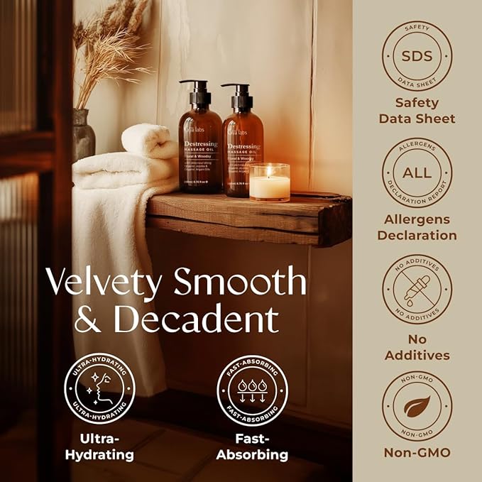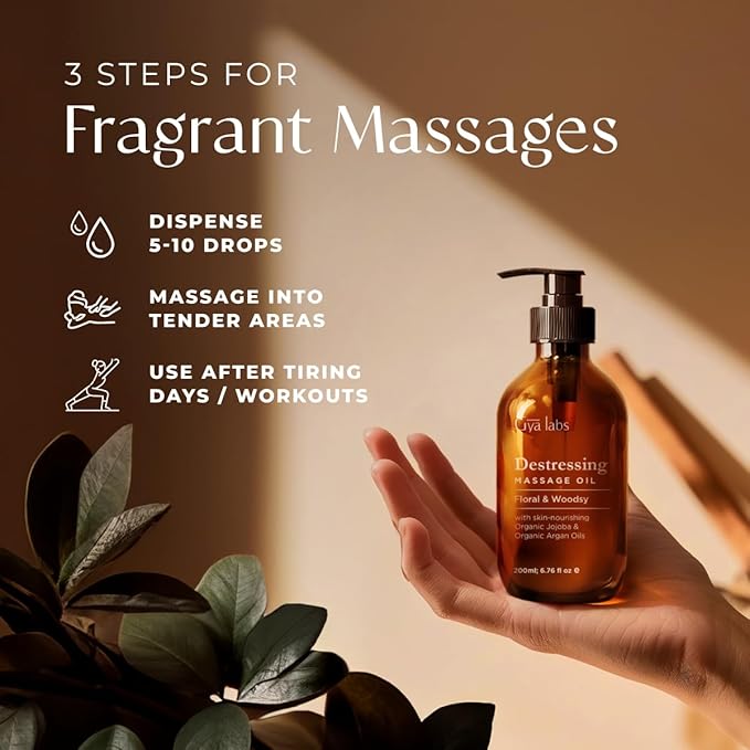 - Perfect for daily comfort. Gya Labs' Destressing Massage oil is a body massage oil for men & women that has soothing qualities, making it a suitable warming massage oil for unwinding and post-workouts. Use 2-3 pumps of oil and massage tender areas.