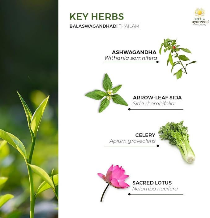 Kerala Ayurveda Balaswagandhadi Thailam - Ayurvedic Massage Oil for Body with Ashwagandha - Balances Vata and Pitta, Calms Mind, Nourishes Body & Tones Muscles, 6.76 Fl Oz