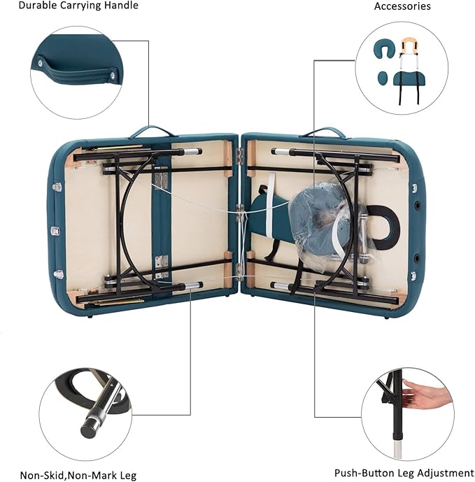 Artechworks 28" Width 3 Folding Portable Lightweight Massage Table Facial Salon Spa Tattoo Bed with Aluminium Leg for Home Office Living Room, Teal Green Color