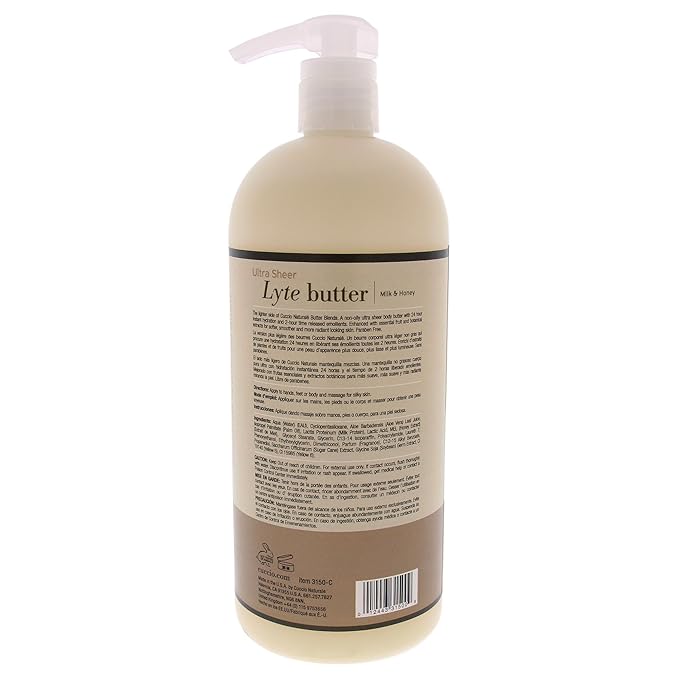 Cuccio Naturale Lyte Ultra-Sheer Body Butter - Replenishing Scented Moisturizer Cream - Deep Hydration To Repair Dry Skin - All Natural, Cruelty-Free Formula - Milk And Honey - 32 Oz