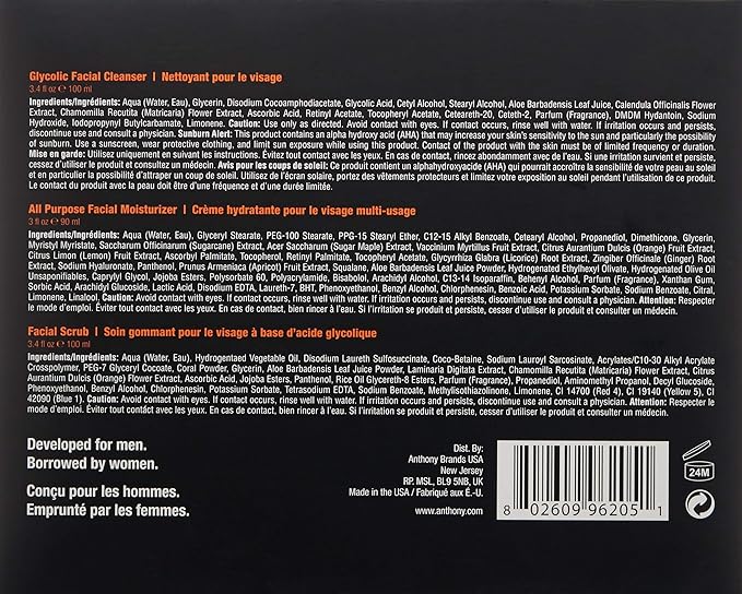 Anthony Face It & Go Kit, Set Includes Glycolic Facial Cleanser 3.4 Fl Oz. All Purpose Facial Moisturizer 3 Fl Oz. Facial Scrub 3.4 Fl Oz.