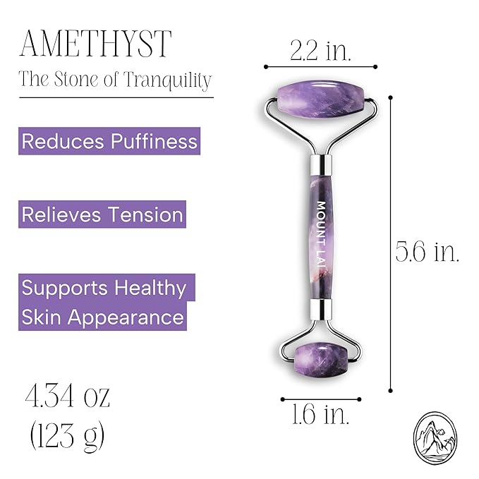 - Dual-ended design: Featuring two roller heads, one with a larger stone for the face and another with a smaller stone for the under-eye area, the Mount Lai Amethyst Massage Face Massager Roller is versatile and perfect for all areas of the face.