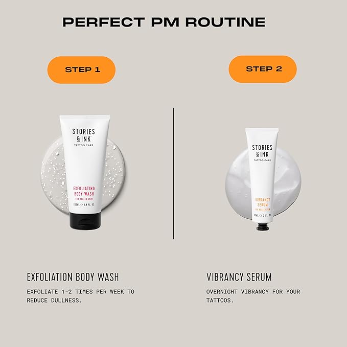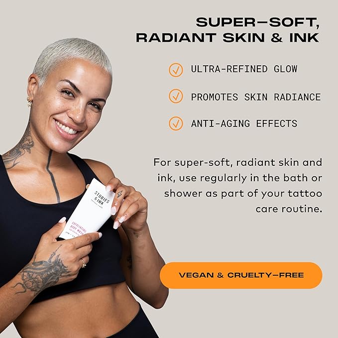 Stories & Ink Tattoo Aftercare | EXFOLIATING BODY WASH - Body Scrub Removes Dead & Dull Skin, Brightens Healed Tattoos, 200 mL / 6.8 Fl Oz