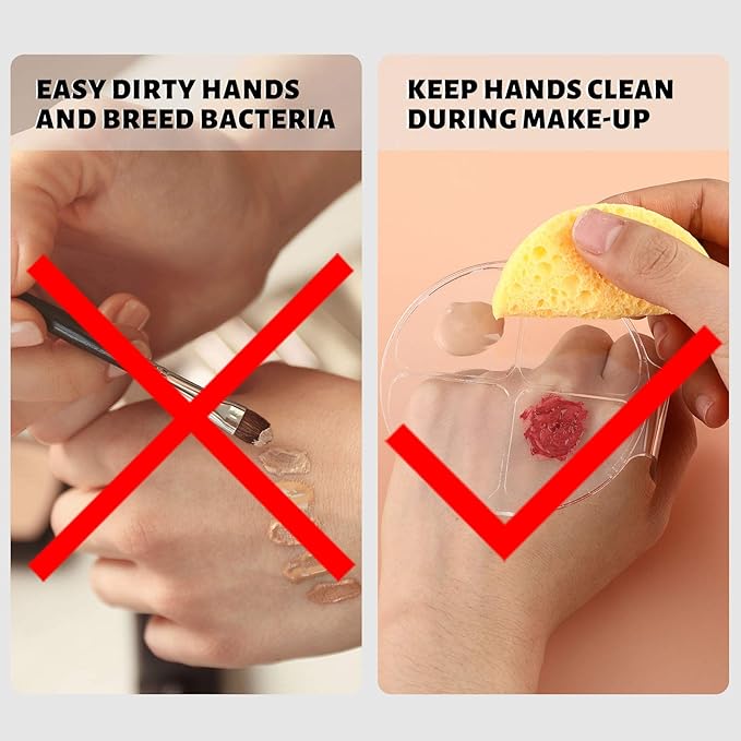 - Wide usages: you can apply the clear makeup palette in the mixed foundation, manicure oil, lip glaze, cream, liquid, and other cosmetics; They can not only keep hands clean during make-up but also reduce the possibility of your cosmetics getting dirty