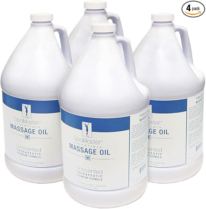 Master Massage - Organic, Unscented, Vitamin-Rich and Water-Soluble Massage Oil - 4 Gallon Bottle Per Pack
