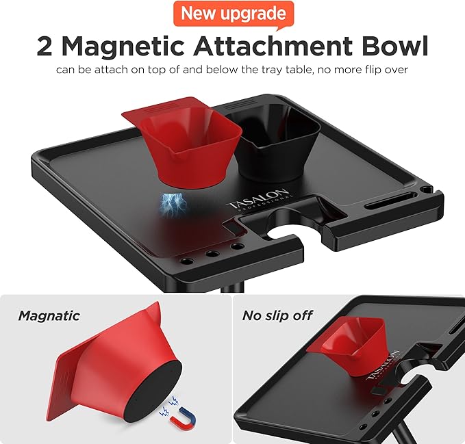TASALON Ultimate Salon Tray on Wheels,Tray Cart with 2 Magnetic Bowls Irony Tattoo Table Station Rolling Tray with Hair Stickless Wheels,Chemical-Resistant Hair Stylist Instrument Tray,Tray for Dyson