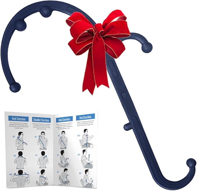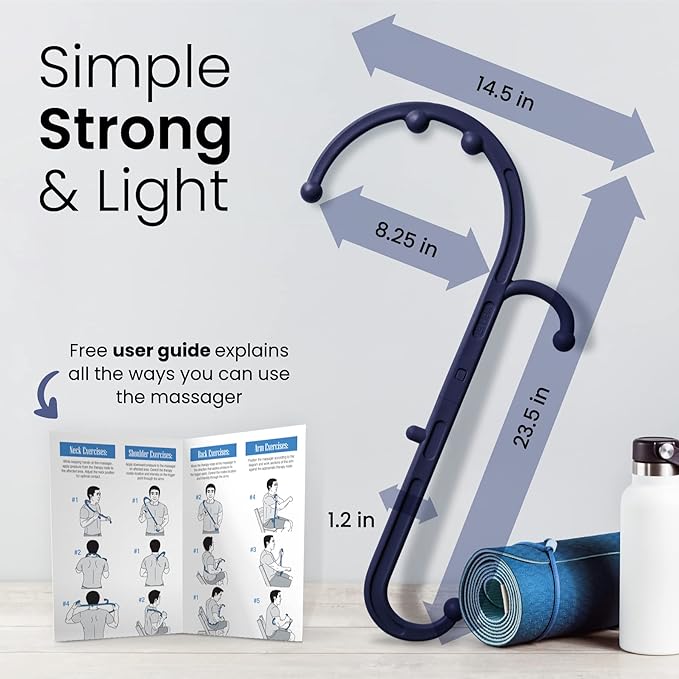LiBa Back and Neck Massager - Trigger Point Massage Tools for Pain Relief and Manual Massage Hook Therapy Handheld Back Neck Shoulder Massager Navy - Gift for Women & Men