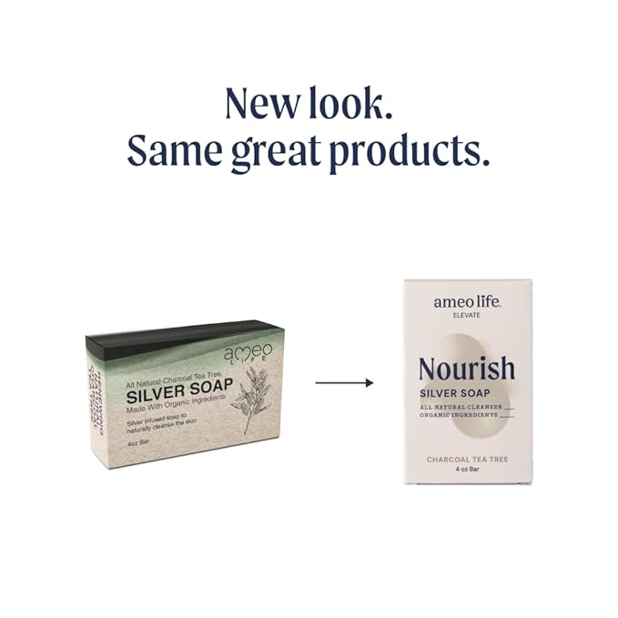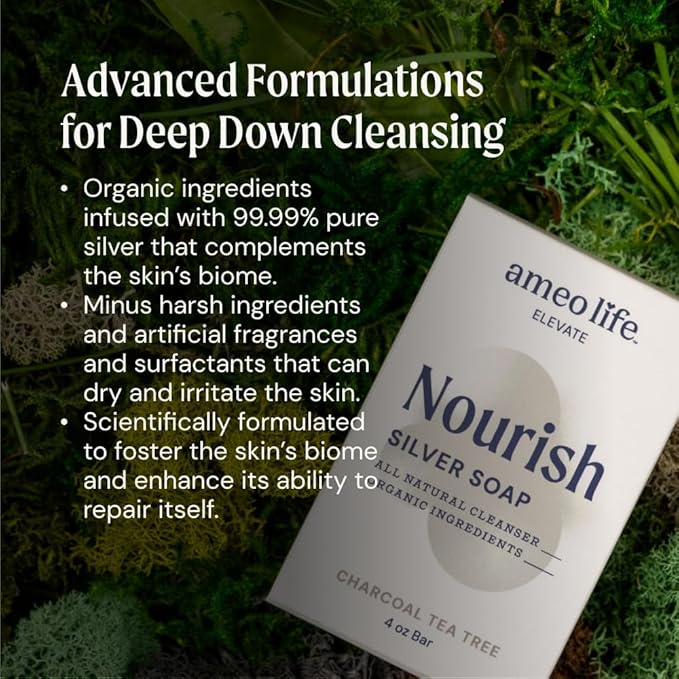 Ameo Life Charcoal Tea Tree Silver Soap with 30 ppm Silver - Naturally Cleanses the Skin, 4 oz Colloidal Silver Soap Bar for Women and Men