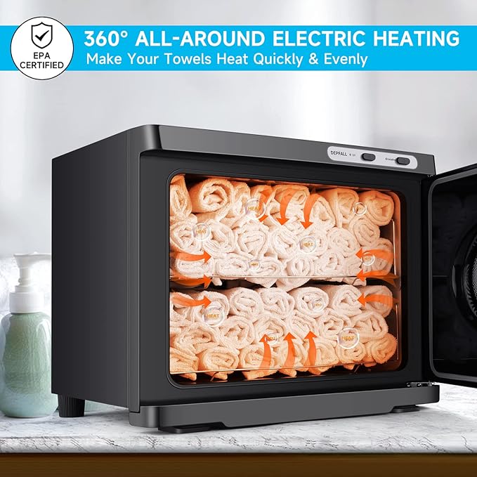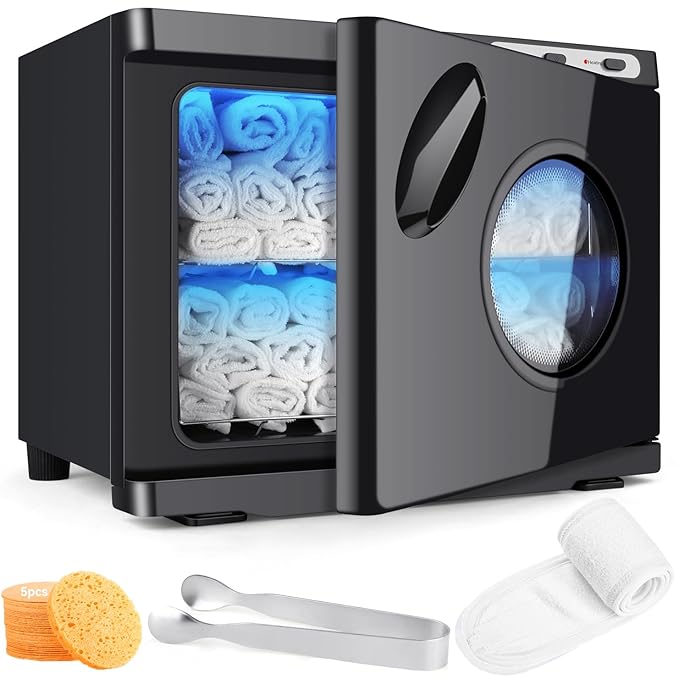 - 【Safe & Reliable】EPA & CE certificated towel warmer for facials, it is safe for daily use. Removable tray underneath for collecting the water generated during the heating process of the towel and easy to clean. Features a see-through glass window of door so you can see how many towels are in the unit.