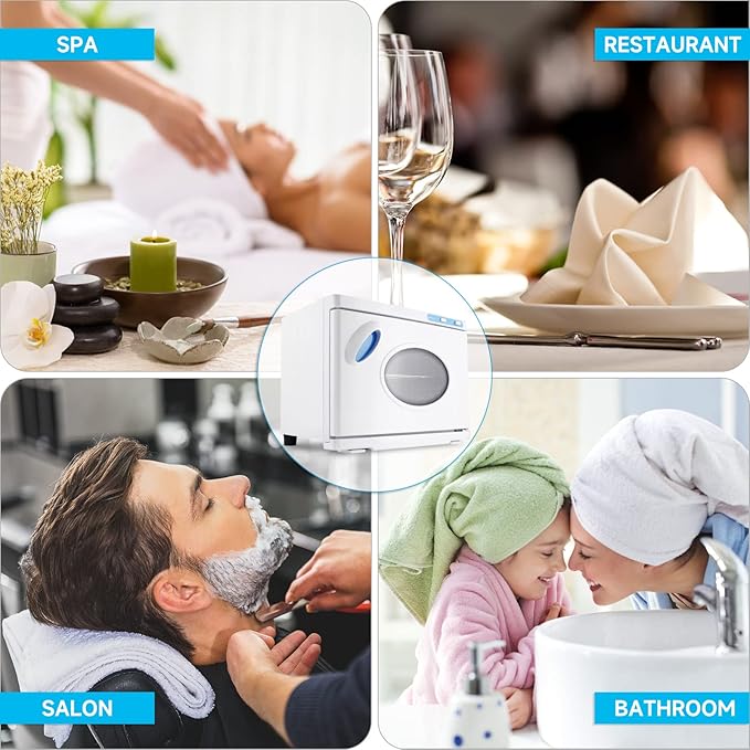- 【2-In-1 Hot Towel Warmer】WET TOWELS ONLY !!! The light inside the tank for warming and cleaning facial towels, also can be used for bath towels, underwear, nail tools, massage stones, and other beauty tools, ideal for home, spa, bathroom, beauty salons, hotel, restaurant and kitchen.