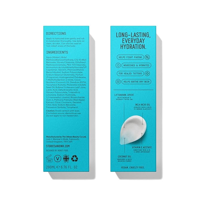 Stories & Ink Tattoo Care | DAILY MOISTURIZER for healed skin - with Advanced UV Ink Protection to Prevent Tattoo Fading, Protects & Hydrates Healed Tattoos, 200 mL / 6.8 Fl Oz