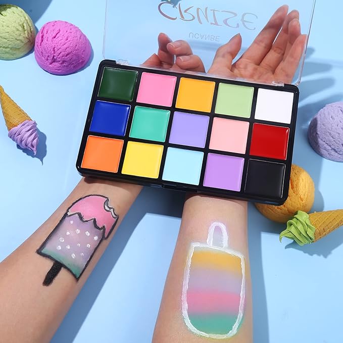 UCANBE Face Body Paint Oil, 15 Macaron Colors Professional Makeup Palette - Non Toxic Hypoallergenic Safe Facepaint for Halloween, Cosplay Costumes, Parties and Festivals