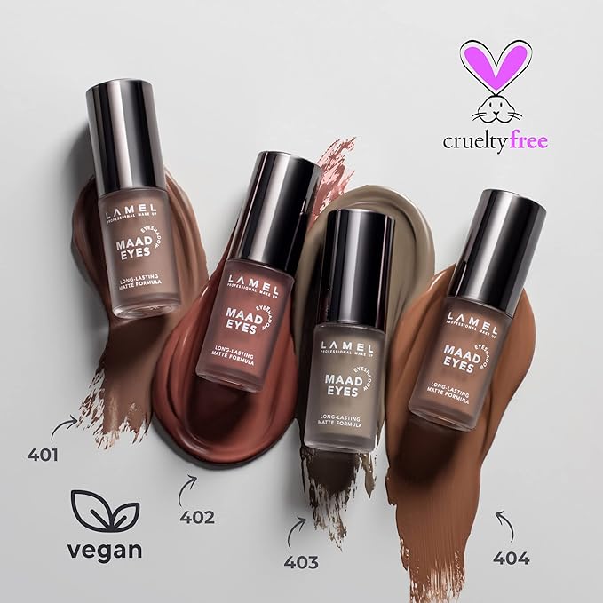 Lamel Matte Liquid Eyeshadow - Long Lasting Waterproof Eye Tint - Quick-Drying, Hypoallergenic Eye Makeup - Creamy & Smooth Formula - Brown Matte Cream Eyeshadow - Maad Eyes, №401, 5.2ml / 0.17oz
