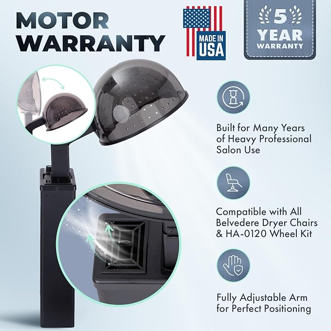 - πππππππππ πππππ πππππππππππππ: Designed to fit all Belvedere dryer chairs and compatible with the HA-0120 Wheel & Handle Kit this versatile dryer integrates seamlessly into existing salon setups without extra hassle or retrofitting.