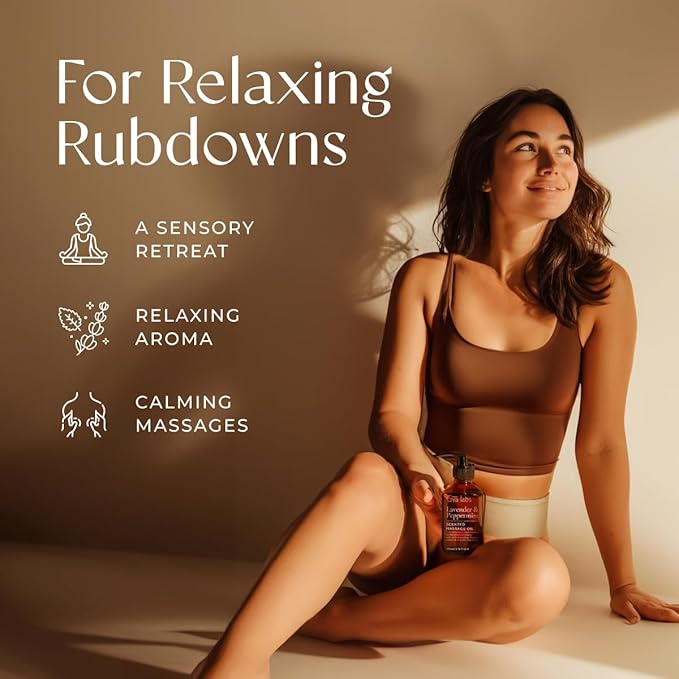 - Delivers body comfort. A massage oil for sore muscles, our lavender and peppermint massage oil is a soothing hero for overworked bodies. Warm up this warming massage oil in a warmer before massaging on tender areas for blissful comfort.