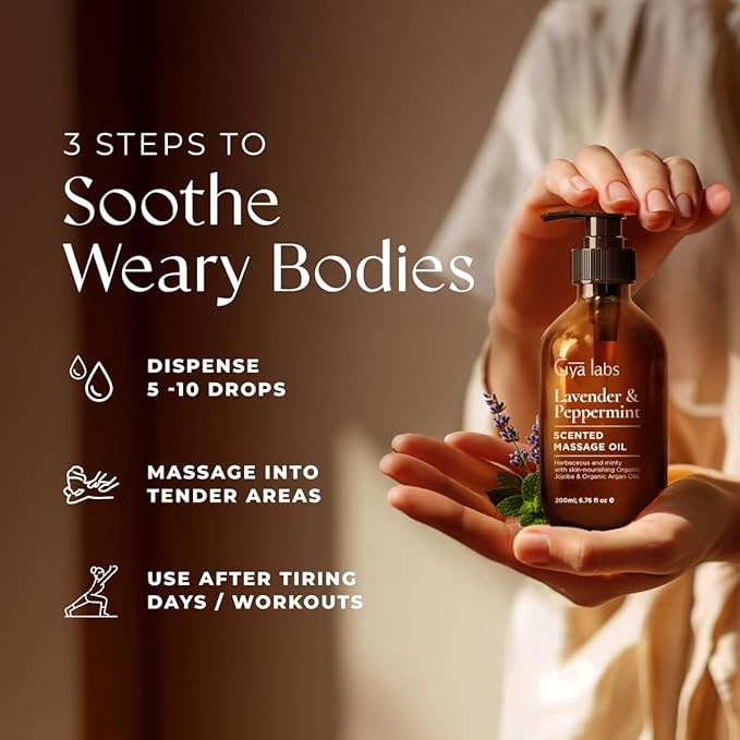 Gya Labs Lavender & Peppermint Massage Oil - 6.76 Fl Oz - Non-Greasy Formula for Sore Muscles, Deep Relaxation & All Skin Types - Suitable for Men & Women