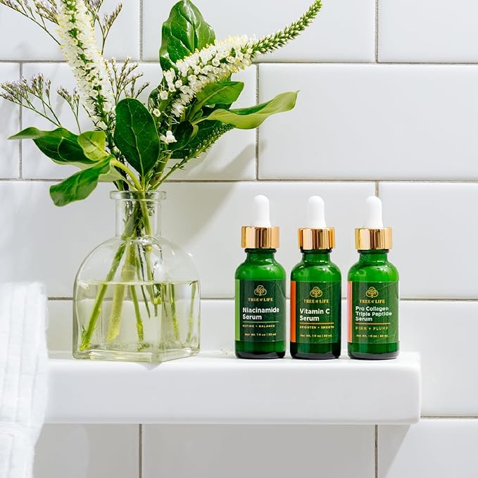 Tree of Life Beauty Skin Care Set, Brightening, Firming, Dry Face, Dermatologist Tested - Complete Hydration Trio, Vitamin C Serum, Niacinamide, Pro Collagen Peptide, 3 count of 1Fl oz