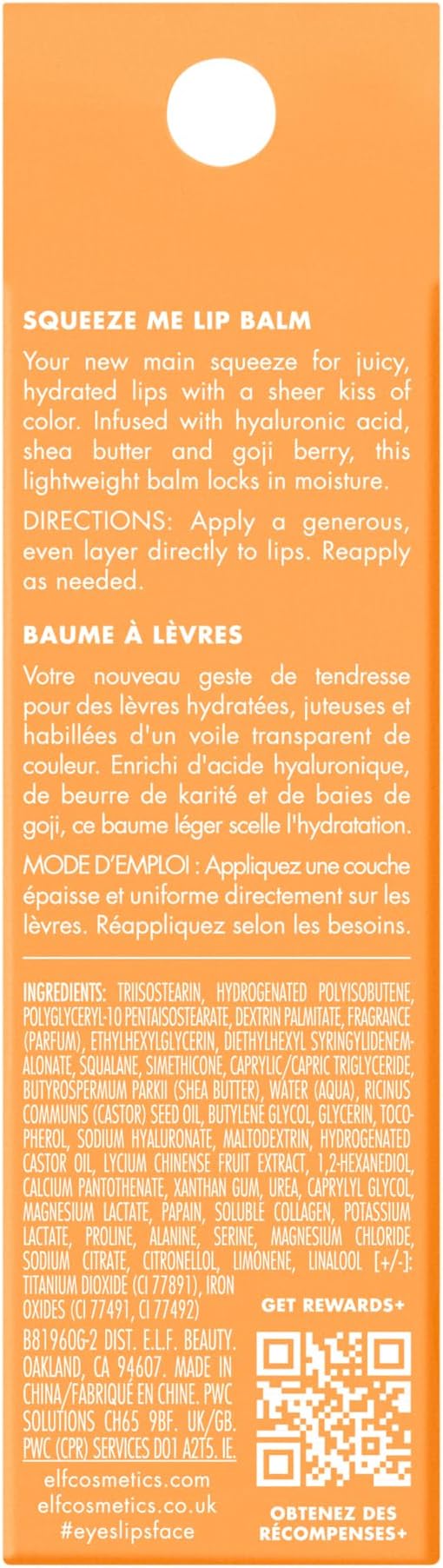 - MOISTURIZING LIP BALM: Meet e.l.f. Cosmetics Squeeze Me Lip Balm, your new favorite lip product for hydrated and nourished lips.