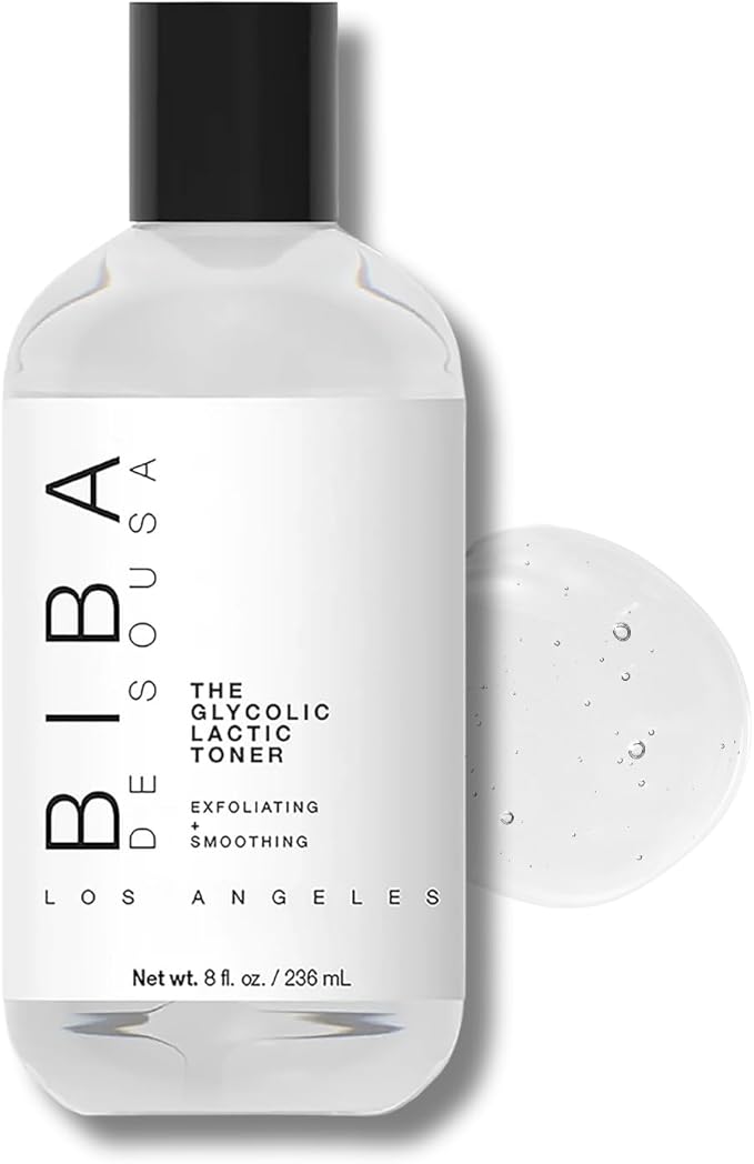 Biba De Sousa The Glycolic Lactic Toner - Exfoliating Toner with AHA, Hyaluronic Acid, and Aloe Vera - Illuminates Skin Complexion Without Excessive Drying (8 oz)