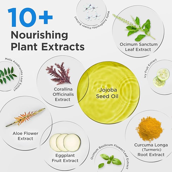 - JOJOBA OIL FOR SKIN BALANCE — Jojoba oil (structurally similar to skin sebum) helps dissolve and erase heavy makeup, absorb easily, and lock in moisture without clogging pores—suitable for acne-prone skin.