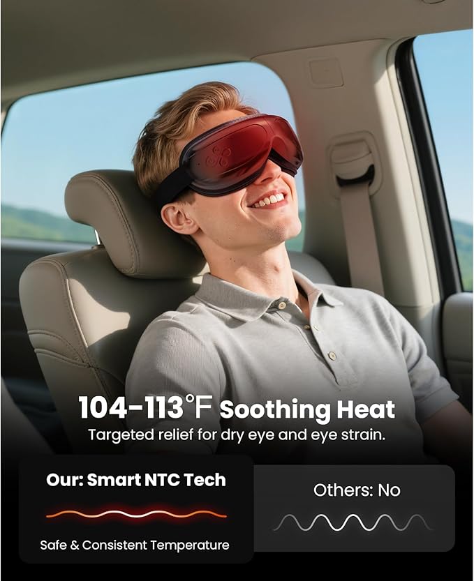 - Indulge in Maximum Comfort with Custom Settings - Experience the ultimate comfort and relaxation with our adjustable 3-level compression and 2-level heat settings. Choose from soft, moderate, or strong compression intensity to suit your needs. You can also enjoy the soothing warmth of 104℉(Low Heat) for a gentle effect or go for a deeper heat of 113℉ (High Heat) to help improve blood circulation, reduce eye puffiness, and encourage a sense of calm and tranquility