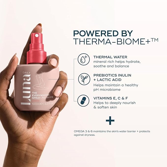 Luna Daily Body Cleansing Spray | Hydrating Feminine & Body Mist with Soft Cotton Scent | pH-Balanced, Gentle & Moisturizing | For Intimate Care, Underarms & Travel Freshness, 100ml
