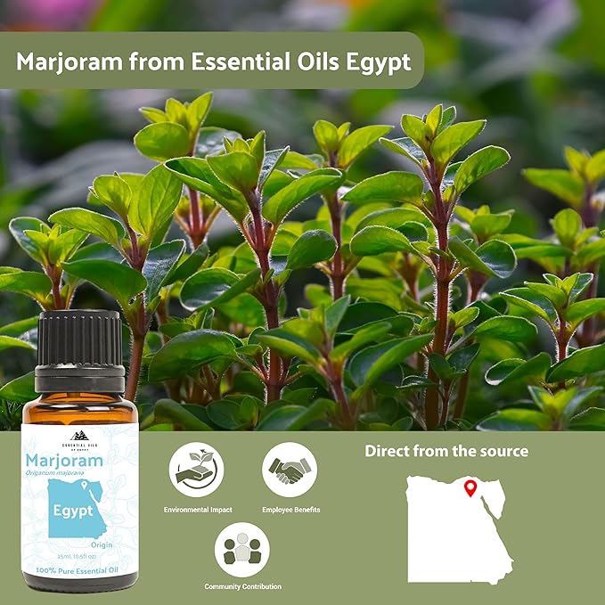 - EGYPTIAN CULTURAL UNITY: Celebrates Egyptian tradition through Essential Oils Egypt's community-focused sustainability programs supporting local children's education and creative development. Hand-harvested marjoram reflects centuries of cultural wisdom and unity.