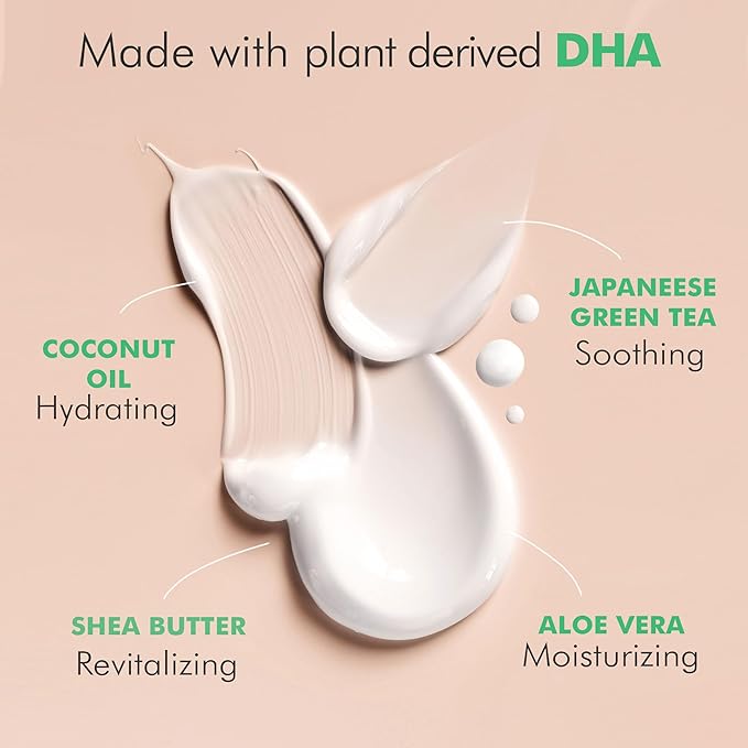 - DYE FREE, TOXIN FREE: Achieve a natural-looking tan with our body tanning cream, crafted using the best 𝐚𝐥𝐥-𝐧𝐚𝐭𝐮𝐫𝐚𝐥 and 𝐨𝐫𝐠𝐚𝐧𝐢𝐜 𝐢𝐧𝐠𝐫𝐞𝐝𝐢𝐞𝐧𝐭𝐬 like aloe vera and shea butter for a radiant glow and hydrated skin. Our formula is 𝐟𝐫𝐞𝐞 𝐟𝐫𝐨𝐦 junk, providing a safe and effective tanning solution.