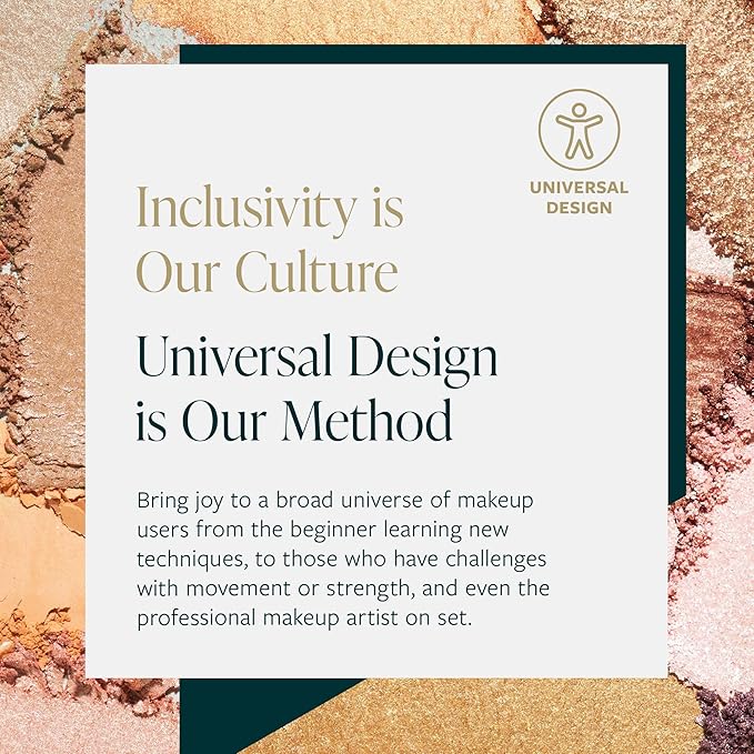 - Universal Design (UD): Our shadow palettes feature an extended "lip" for easy opening & are designed to lay flat freeing your hands