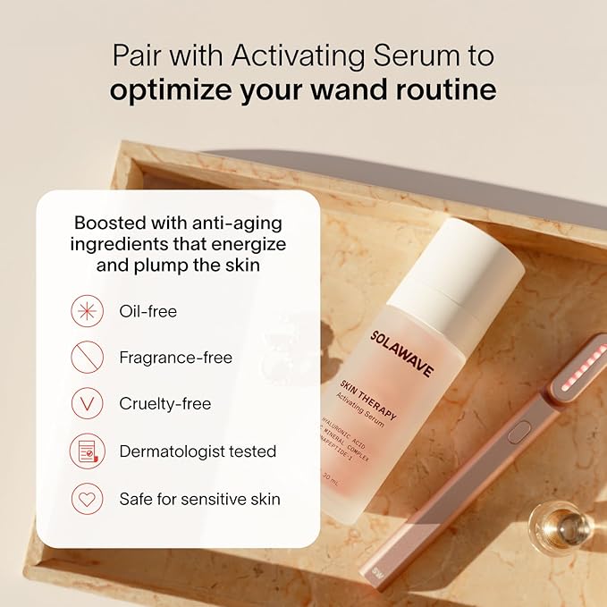 Solawave 4-in-1 Red Light Therapy Wand + Activating Serum | LED Skincare Device for Face & Neck | Facial Tool with Galvanic Current, Massage & Therapeutic Warmth | Reduces Appearance of Fine Lines