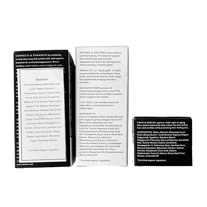 - PERFECT FOR: Visible wrinkles, crow’s feet, dark circles, dryness. Renew Resurfacing Night Serum hydrates and smooths the appearance of skin. Revive Firming Eye Cream de-puffs and firms the look of the eye area, and Rejuvenate Restorative Face Oil delivers intense moisture and an instant golden-hour glow.