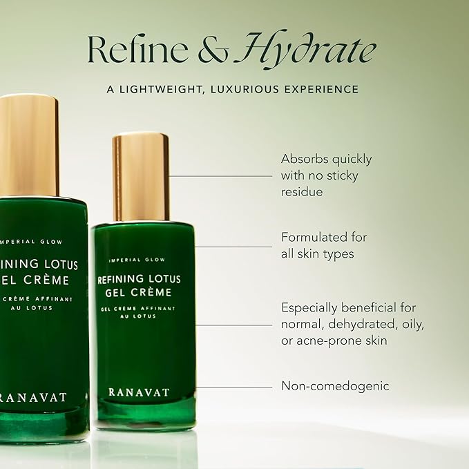 RANAVAT Refining Lotus Gel Cream - Hydrating Gel Moisturizer & Pore Minimizer – Improves Radiance & Texture with Hyaluronic Acid & Floral Ketoacids (1.7 oz)