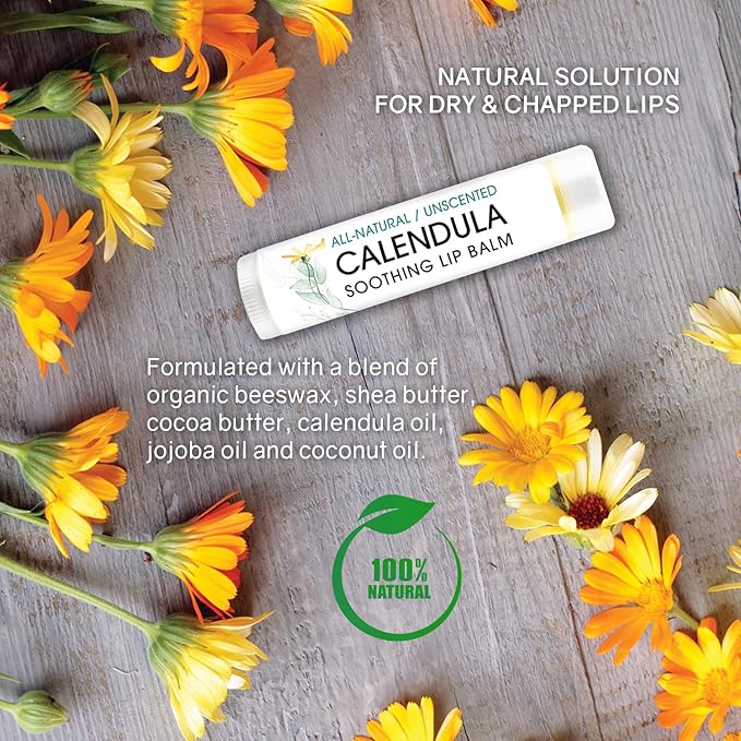 - NATURAL MOISTURIZING LIP BALM: Our Unscented Calendula Soothing Lip Balm provides gentle care for your lips. Perfect for sensitive skin, it moisturizes and protects, giving you soft, smooth lips without any overpowering scent.