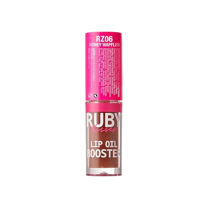 Ruby Kisses Lip Oil Booster, Hydrating Lip Gloss with Nourishing Natural Oil Blend, Jumbo Wand for Easy Application, Non-Sticky Formula (Honey Waffles)