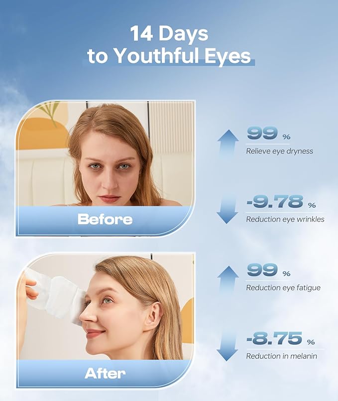 - EXCLUSIVE PATENTED DESIGN | Advanced Heating Pad: Our unique heating design sets a new standard, prioritizing environmental friendliness while providing continuous heat to enhance hyaluronic acid absorption, effectively preventing eye wrinkles. It also ensures the eyes are protected from excessive heat exposure.