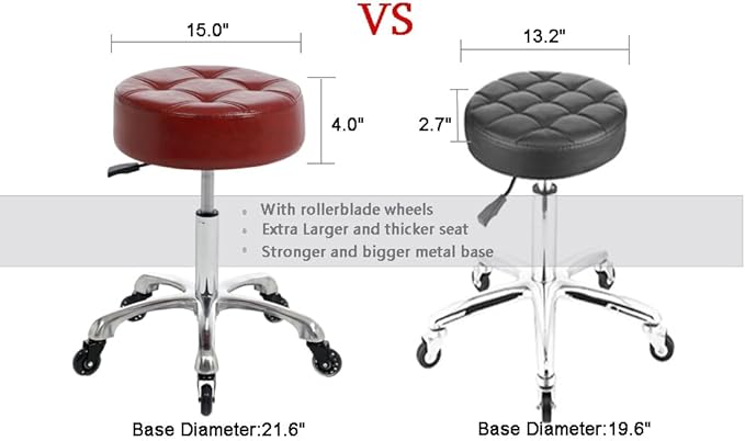 - Ergonomic Comfort: Extra-wide 15" round seat (4" thick cushion) offers superior support for long hours in salons, spas, or home offices, reducing fatigue.