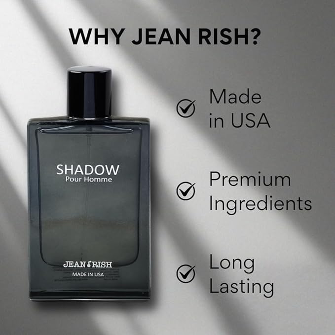 Jean Rish Shadow Pour Homme Eau De Toilette for Men (3.4 Fl Oz / 100ml) with Lemon, Cedar & Musk Notes - Long Lasting and Luxury Fragrance