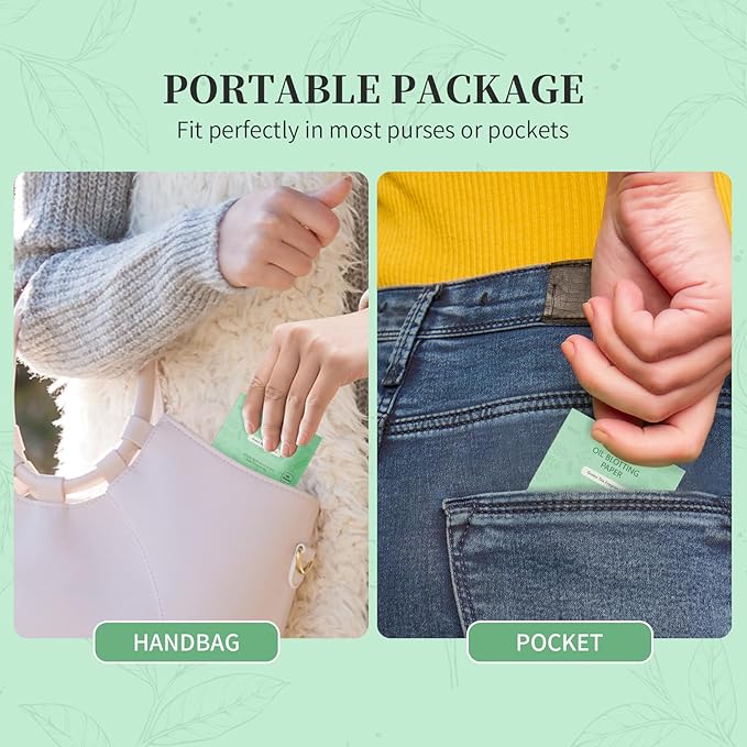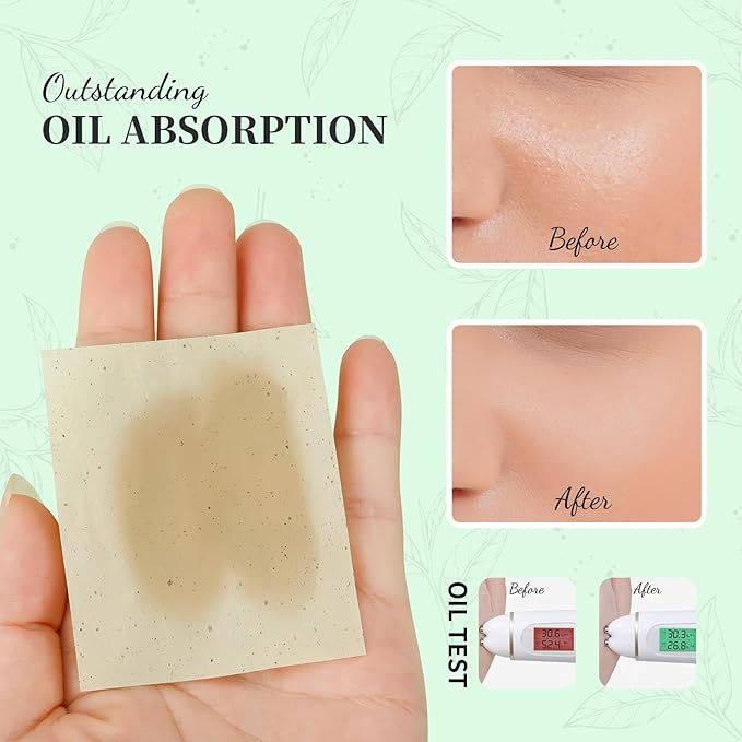- 🍃Premium Oil Blotting Tissues🍃made with 100% NATURAL linen fibers paper with Green Tea,no fragrance or scent added. Perfect for sensitive skin without irritation while removing excess oil and sebum.