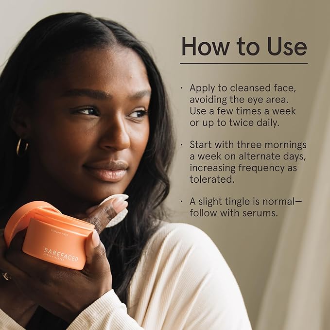 Barefaced Toning Pads (60 count) - Exfoliating Face Pads with 2% Glycolic Acid & Salicylic Acid - Brightens & Cleanses Skin, Clears Pores, Reduces Fine Lines & Wrinkles