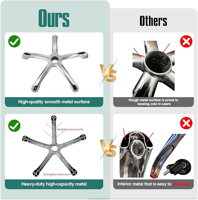 - Heavy-duty and high-quality metal base: Unlike the low-quality metal with rough surfaces that are prone to damage, our high quality aluminum base has a smooth surface that will not scratch the skin and provides reliable stability. Weight capacity: 450 lbs.