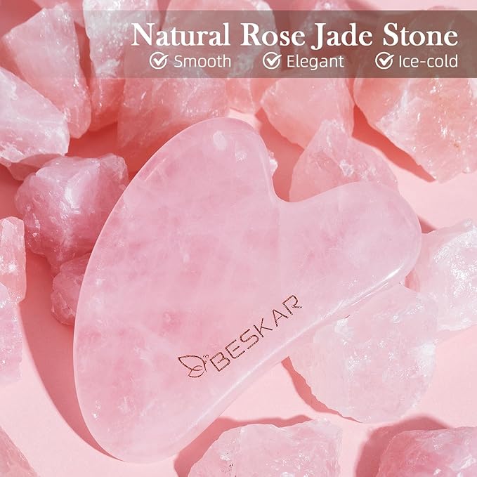 BESKAR Gua Sha Facial Tools, Natural Jade Stone Guasha Massager for Jawline Sculpting, Tighten Face Skin and Reduce Wrinkles, Face Eyes Body Neck Massage Tool, Skin Care Gift